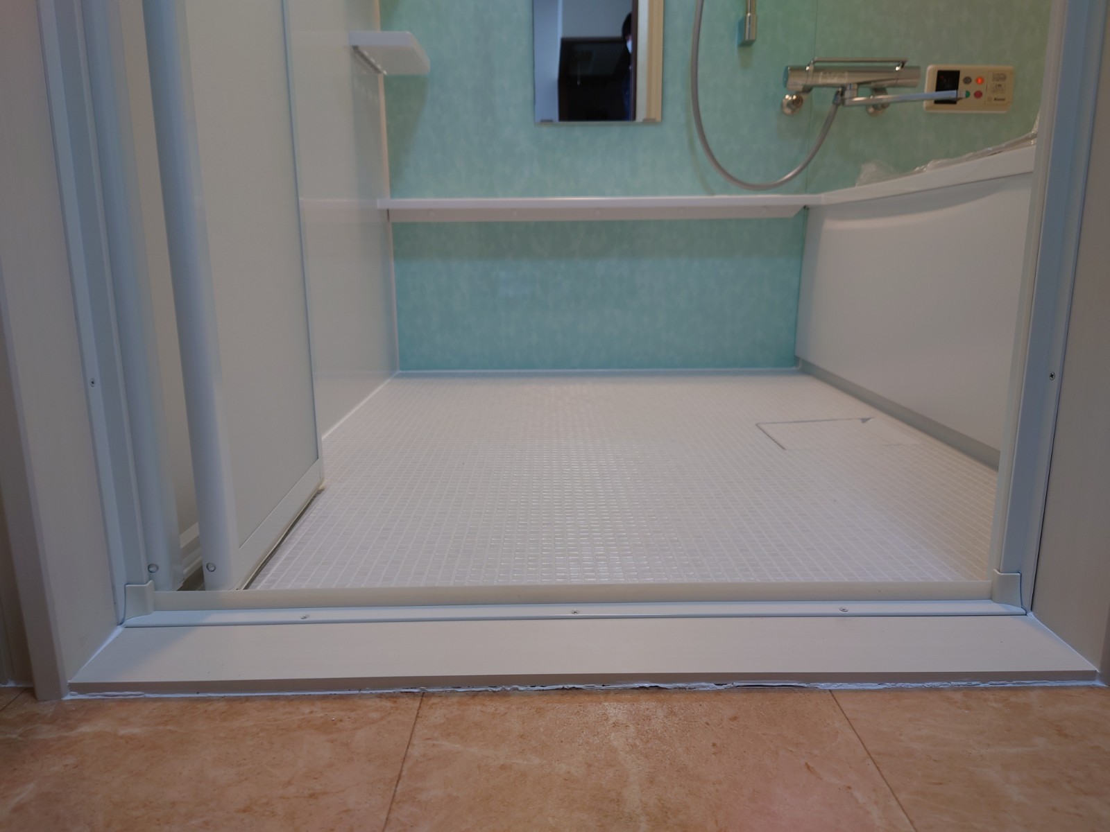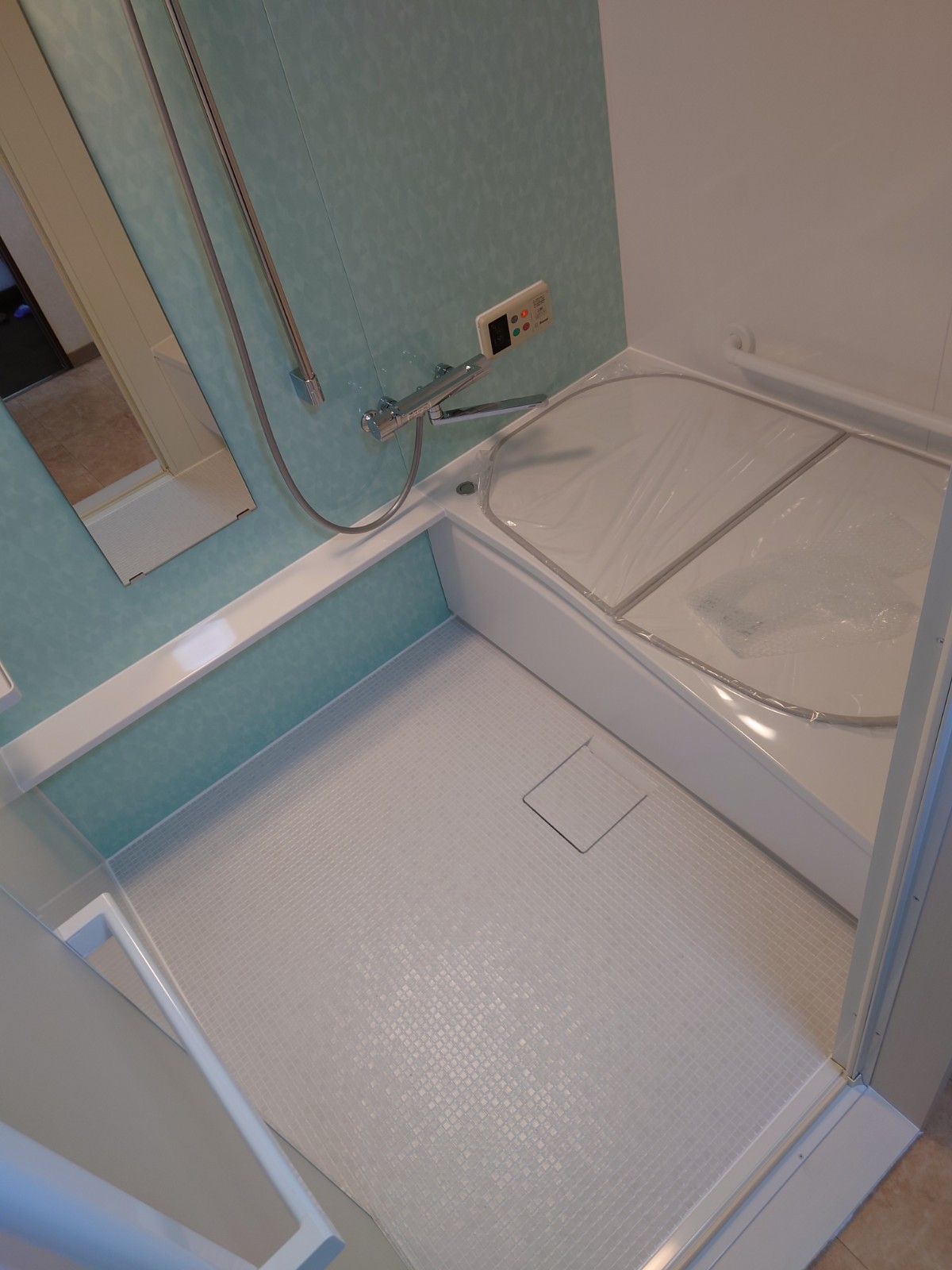 リフォーム後の浴室の床には、ほっカラリ床を導入しました。ほっカラリ床は、床の内側にクッション層を持っており、そのクッション層が畳のような柔らかさを実現しています!同時に断熱材の役割も果たすので冬場の一歩目もヒヤっとしません。